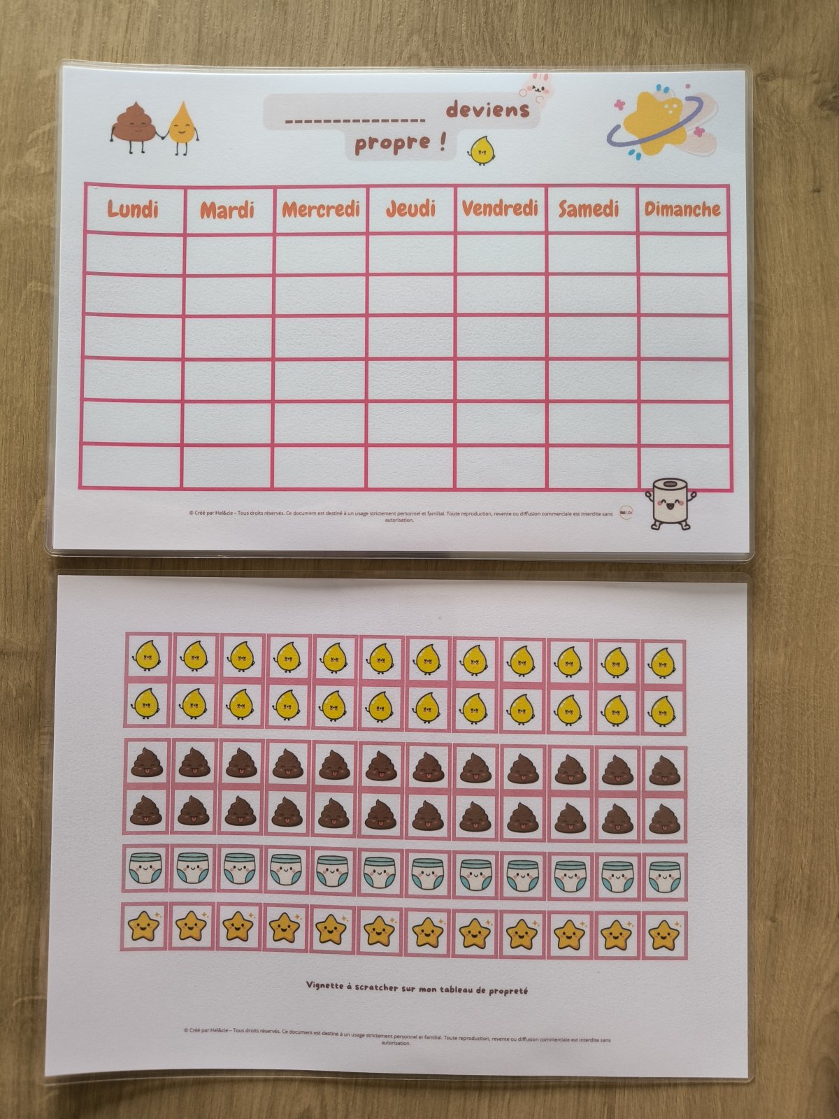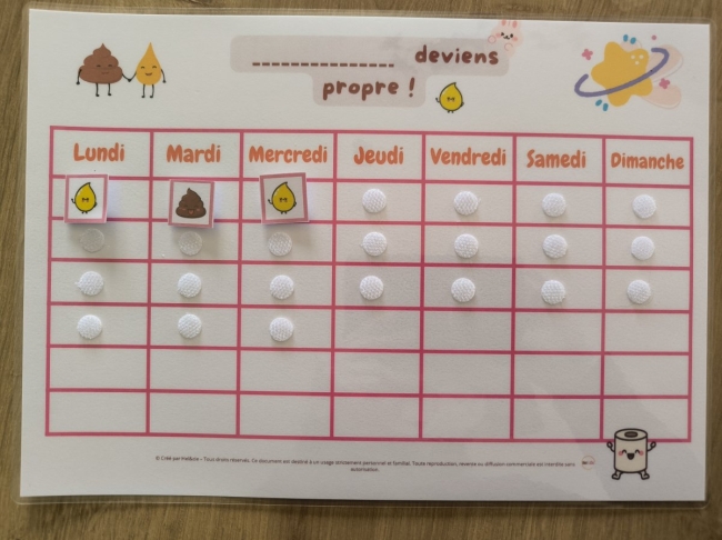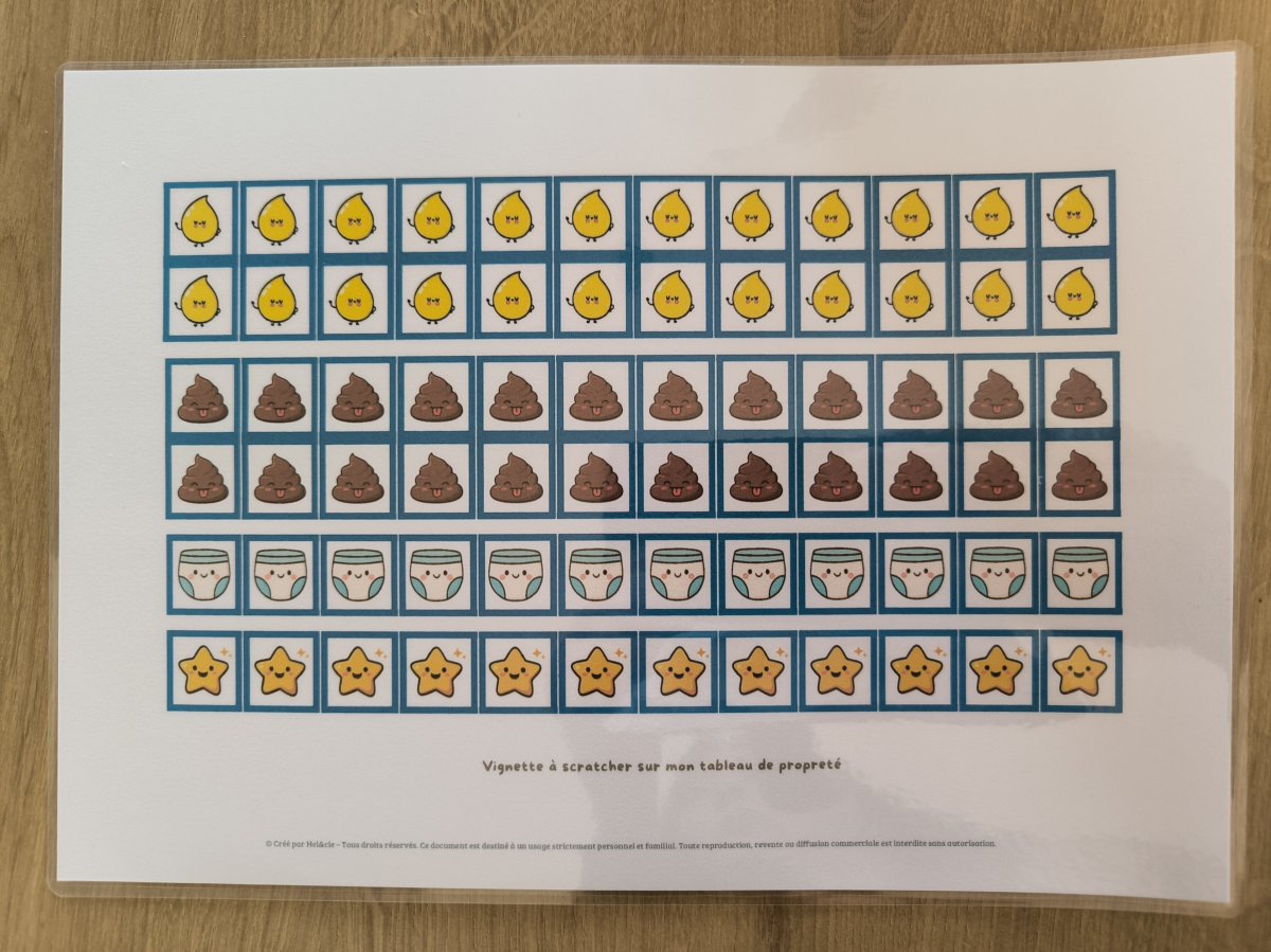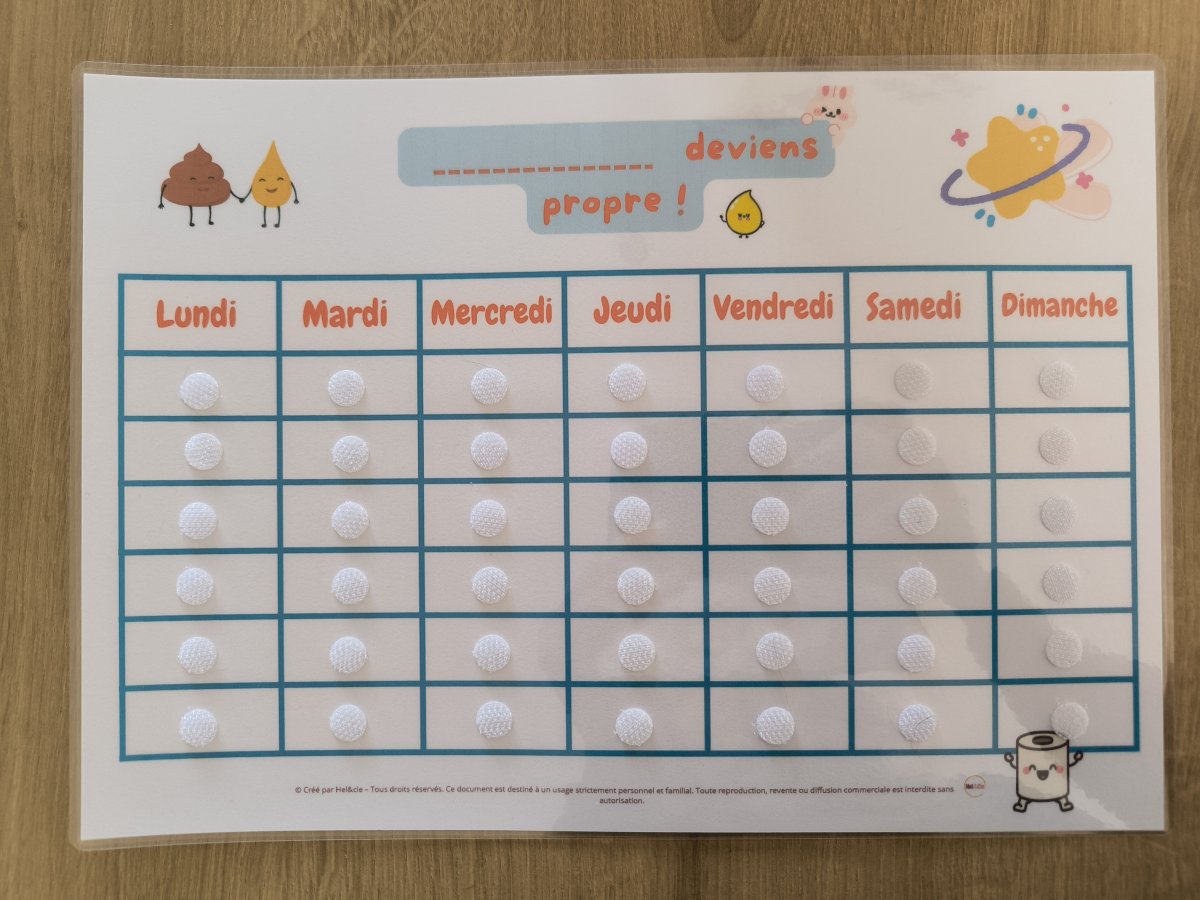 L'apprentissage de la propreté est une grande étape. Pour encourager votre enfant sans lui mettre de pression, j'ai conçu ce tableau de motivation interactif et ludique. Plus qu'un simple papier, c'est un véritable outil pédagogique entièrement plastifié pour résister à toutes les aventures du quotidien !