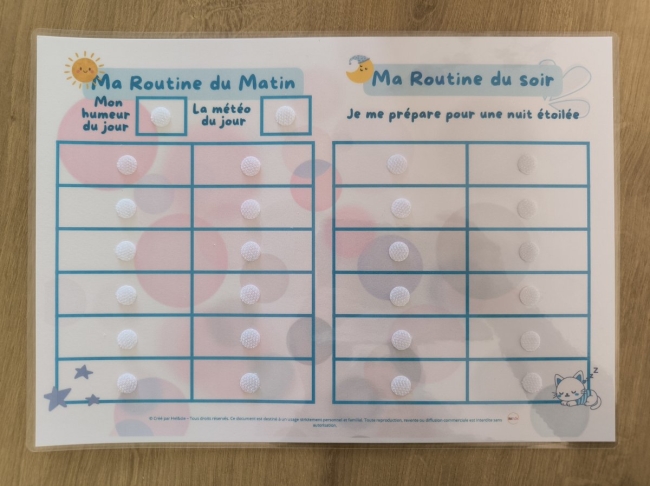 Dites adieu aux matins stressants ! Ce kit routine Hel&Cie accompagne votre enfant vers l’autonomie en douceur. Grâce à ses supports plastifiés, il est ultra-résistant et conçu pour durer toute l'année.